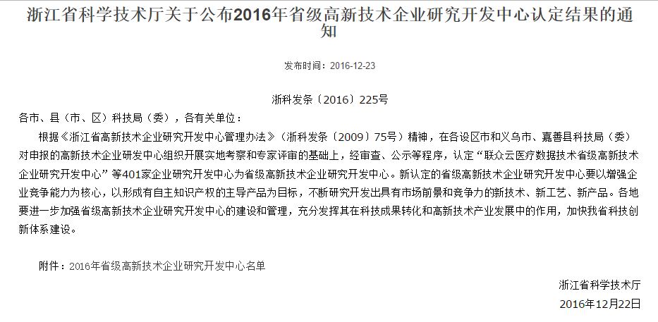 浙江省科学技术厅近日公布了2016年省级高新技术企业研究开发中心认定结果,我公司的"豪利777科技智能装备省级高新技术企业研究开发中心"通过认定。