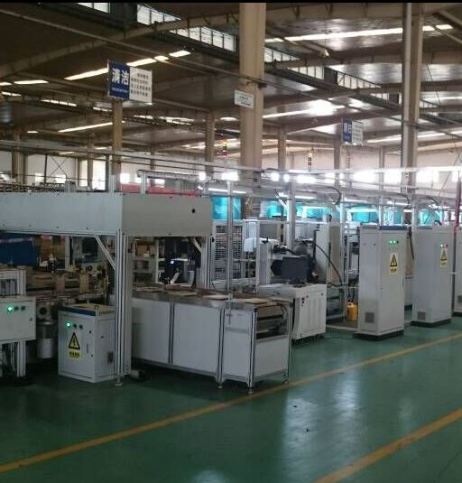 右前轴转向节总成的共线装配。装配线配置有自动拧紧机